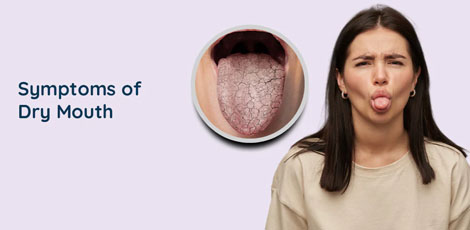 There are several symptoms of dry mouth such as dry sticky feeling in the mouth, difficulty in chewing or swallowing, changed sense of taste, cracked lips, sore throat etc. We could get dry mouth issues due to numerous reasons like stress, ageing, radiotherapy, diabetes etc.