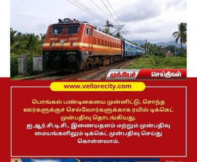 பொங்கல் பண்டிகையை முன்னிட்டு சொந்த ஊர்களுக்கு செல்வோர்களுக்கான ரயில் டிக்கெட் முன்பதிவு தொடங்கியது. www.irctc.co.in என்ற இணையதளம் மற்றும் முன்பதிவு…