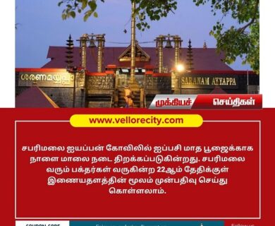 சபரிமலை ஐயப்பன் கோவிலில் மண்டல மகர விளக்கு பூஜைக்காக நாளை மாலை 05:00 மணிக்கு நடை திறக்கப்படுகின்றது. சபரிமலை வரும் பக்தர்கள் வருகின்ற 22ஆம்…