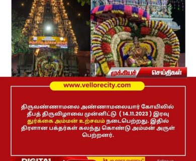 திருவண்ணாமலை அருள்மிகு அண்ணாமலையார் திருக்கோயிலில் திருக்கார்த்திகை தீபத் திருவிழாவை முன்னிட்டு, நேற்று (14.11.2023) இரவு துர்க்கை அம்மன் (ஊர்க்காவல் தெய்வம்) சிறப்பு அபிஷேக…