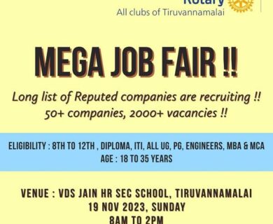 திருவண்ணாமலையில் நாளை மாபெரும் வேலை வாய்ப்பு முகாம்..!
