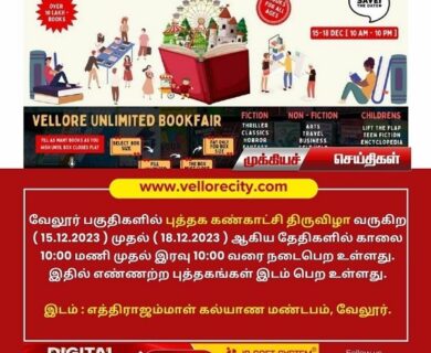 வேலூர் எத்திராஜம்மாள் கல்யாண மண்டபத்தில் புத்தக கண்காட்சி திருவிழா வருகிற 15.12.2023 முதல் 18.12.2023 ஆகிய தேதிகளில் காலை…