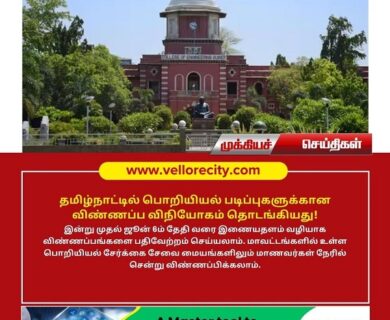 இன்று முதல் ஜூன் 6ம் தேதி வரை இணையதளம் வழியாக விண்ணப்பங்களை பதிவேற்றம் செய்யலாம். மாவட்டங்களில் உள்ள பொறியியல் சேர்க்கை…