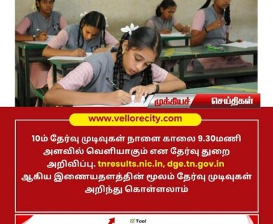 10ம் தேர்வு முடிவுகள் நாளை காலை 9.30மணி அளவில் வெளியாகும் என தேர்வு துறை அறிவிப்பு. tnresults.nic.in, dge.tn.gov.in ஆகிய…