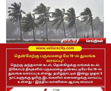 தெற்கு அந்தமான் கடல், தென்கிழக்கு வங்கக் கடல், நிக்கோபார் தீவுகளில் பருவமழை முன்கூட்டியே மே 19-ல் துவங்க வாய்ப்பு உள்ளது.…