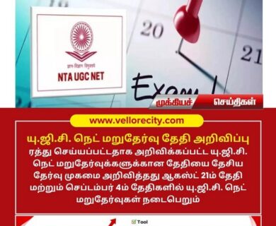 யு.ஜி.சி. நெட் மறுதேர்வு தேதி அறிவிப்பு ரத்து செய்யப்பட்டதாக அறிவிக்கப்பட்ட யு.ஜி.சி. நெட் மறுதேர்வுக்களுக்கான தேதியை தேசிய தேர்வு முகமை…