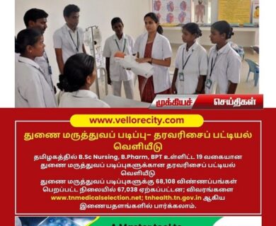 தமிழகத்தில் B.Sc Nursing, B.Pharm, BPT உள்ளிட்ட 19 வகையான துணை மருத்துவப் படிப்புகளுக்கான தரவரிசைப் பட்டியல் வெளியீடு துணை…