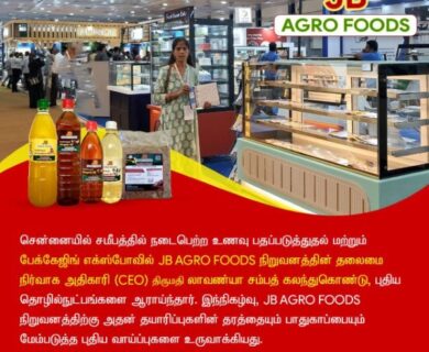 சென்னையில் சமீபத்தில் நடைபெற்ற உணவு பதப்படுத்துதல் மற்றும் பேக்கேஜிங் எக்ஸ்போவில் JB AGRO FOODS இன் தலைமை நிர்வாக அதிகாரி…