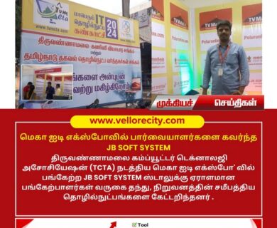திருவண்ணாமலை கம்ப்யூட்டர் டெக்னாலஜி அசோசியேஷன் (TCTA) நடத்திய மெகா ஐடி எக்ஸ்போ’ வில் பங்கேற்ற JB SOFT SYSTEM ஸ்டாலுக்கு ஏராளமான பங்கேற்பாளர்கள்…