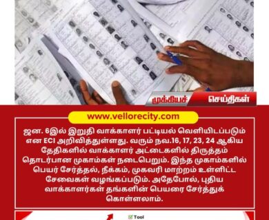 ஜன. 6இல் இறுதி வாக்காளர் பட்டியல் வெளியிடப்படும் என ECI அறிவித்துள்ளது. வரும் நவ.16, 17, 23, 24 ஆகிய…