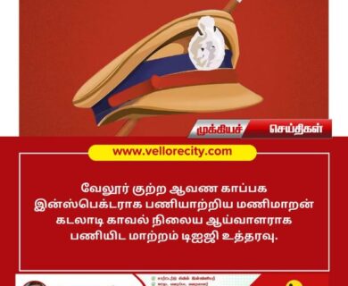 வேலூர் குற்ற ஆவண காப்பக இன்ஸ்பெக்டராக பணியாற்றிய மணிமாறன் கடலாடி காவல் நிலைய ஆய்வாளராக பணியிட மாற்றம் டிஐஜி உத்தரவு