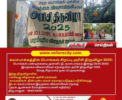 பொங்கல் பண்டிகையை முன்னிட்டு, கலசபாக்கம் இன்று (10.01.2025) இயற்கை விவசாயிகள் சந்தையில் அரிசி திருவிழா 2025 வெகு சிறப்பாக நடைபெறவுள்ளது. இந்த திருவிழாலில்,…