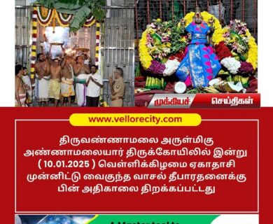 திருவண்ணாமலை அருள்மிகு அண்ணாமலையார் திருக்கோயிலில் இன்று (10.01.2025 ) வெள்ளிக்கிழமை ஏகாதாசி முன்னிட்டு வைகுந்த வாசல் தீபாரதனைக்கு பின் அதிகாலை திறக்கப்பட்டது.