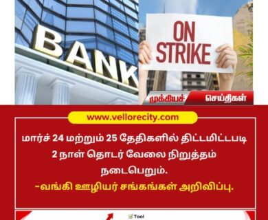 மார்ச் 24 மற்றும் 25 தேதிகளில் திட்டமிட்டபடி 2 நாள் தொடர் வேலை நிறுத்தம் நடைபெறும் என வங்கி ஊழியர் சங்கங்கள் அறிவிப்பு.