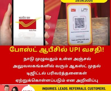 நாடு முழுவதும் உள்ள அஞ்சல் அலுவலகங்களில் வரும் ஆகஸ்ட் முதல் டிஜிட்டல் பரிவர்த்தனைகள் ஏற்றுக்கொள்ளப்படும் என அறிவிப்பு.