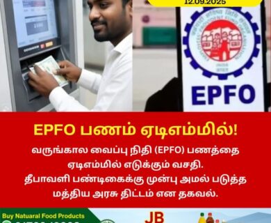 வருங்கால வைப்பு நிதி (EPFO) பணத்தை ஏடிஎம்மில் எடுக்கும் வசதி. தீபாவளி பண்டிகைக்கு முன்பு அமல் படுத்த மத்திய அரசு…