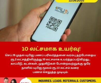 செப்.15 முதல் யுபிஐ பணப் பரிவர்த்தனை வரம்பு தற்போதைய ரூ.2 லட்சத்திலிருந்து 10 லட்சமாக உயர்த்தப்படுகிறது. காப்பீடு, கடன்கள், முதலீடுகள்…