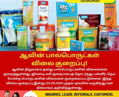 ஆவின் நிறுவனம் தனது பால்பொருட்களின் விலைகளை குறைத்துள்ளது. ஜிஎஸ்டி வரி குறைப்பைத் தொடர்ந்து பன்னீர், நெய் போன்ற பொருட்களின் விலைகள் குறைக்கப்பட்டுள்ளன. இந்த விலை குறைப்பு இன்று (22.09.2025) முதல்…