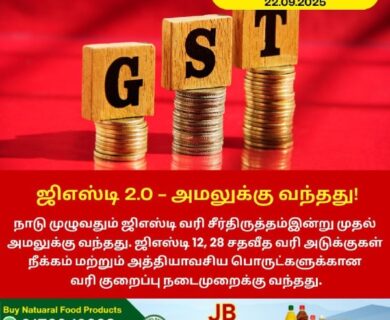 நாடு முழுவதும் ஜிஎஸ்டி வரி சீர்திருத்தம் இன்று முதல் அமலுக்கு வந்தது. ஜிஎஸ்டி 12, 28 சதவீத வரி அடுக்குகள் நீக்கம் மற்றும் அத்தியாவசிய பொருட்களுக்கான வரி குறைப்பு…