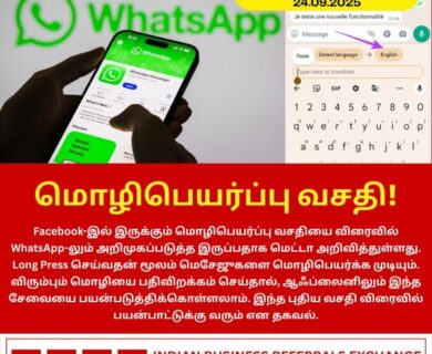 Facebook-இல் இருக்கும் மொழிபெயர்ப்பு வசதியை விரைவில் WhatsApp-லும் அறிமுகப்படுத்த இருப்பதாக மெட்டா அறிவித்துள்ளது. Long Press செய்வதன் மூலம் மெசேஜுகளை மொழிபெயர்க்க முடியும். விரும்பும் மொழியை…