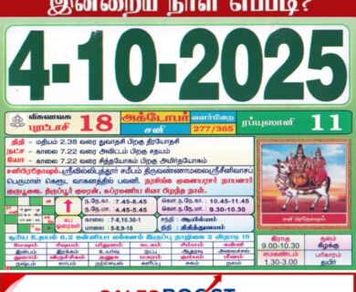 October 04, 2025 – Saturday | Purattaasi 18 | Visuvavasu Year Auspicious Timings Morning 7:45…