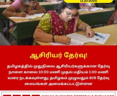 தமிழகத்தில் முதுநிலை ஆசிரியர்களுக்கான தேர்வு நாளை காலை 10:00 மணி முதல் மதியம் 1:00 மணி வரை நடக்கவுள்ளது. தமிழகம்…