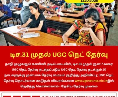 நாடு முழுவதும் கணினி அடிப்படையில், டிச.31 முதல் ஜன.7 வரை UGC நெட் தேர்வு நடத்தப்படும் UGC நெட் தேர்வு…