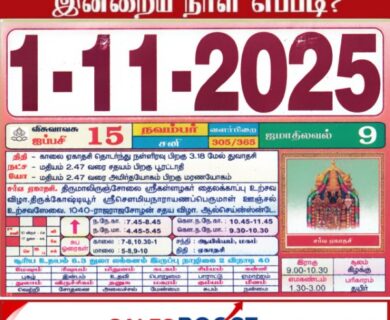 November 01, 2025 – Saturday | Aippasi 15 | Visuvavasu Year Auspicious Timings Morning 7:45…