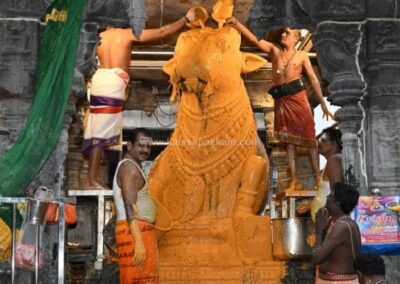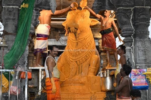 திருவண்ணாமலையில் அருணாச்சலேஸ்வரர் திருக்கோவிலில் நேற்று (01-01-2026) மார்கழி மாத பௌர்ணமி பிரதோஷத்தை முன்னிட்டு நந்தி பகவானுக்கு சிறப்பு அபிஷேக ஆராதனை நடைபெற்றது. இதில் திரளான பக்தர்கள் கலந்து கொண்டு அரோகரா கோஷத்துடன் தரிசனம் செய்தார்கள்.