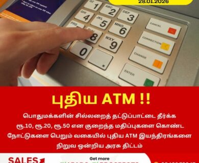 பொதுமக்களின் சில்லறைத் தட்டுப்பாட்டை தீர்க்க ரூ.10, ரூ.20, ரூ.50 என குறைந்த மதிப்புகளை கொண்ட நோட்டுகளை பெறும் வகையில் புதிய…