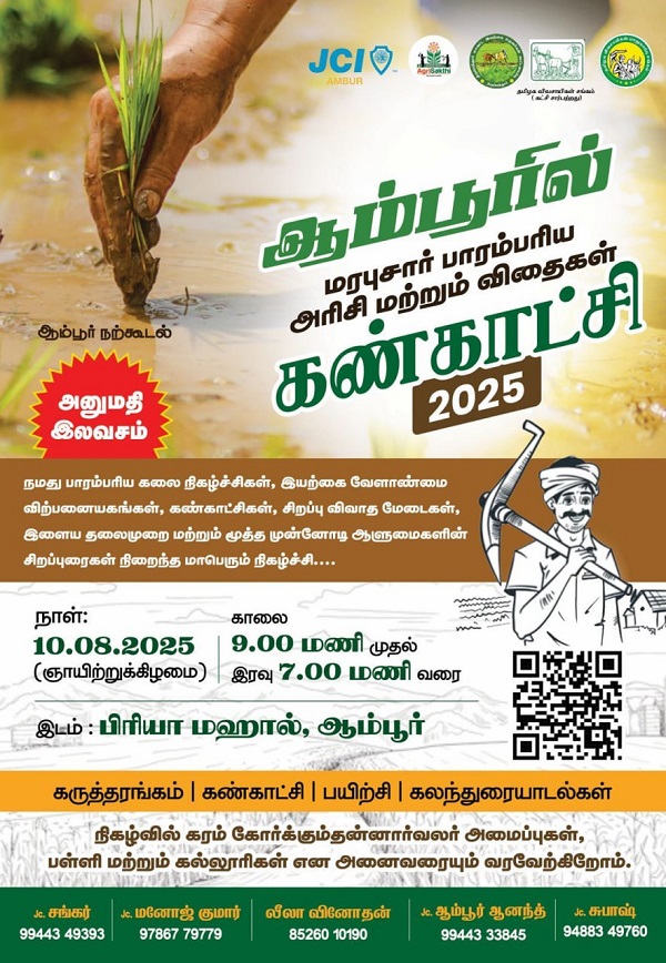ஆம்பூரில் மரபுசார் பாரம்பரிய அரிசி மற்றும் விதைகள் கண்காட்சி நடைபெறுகிறது.