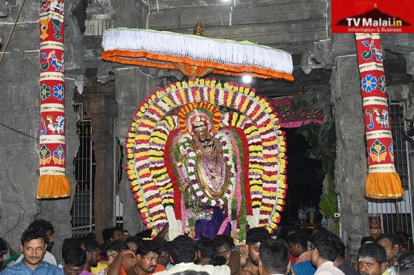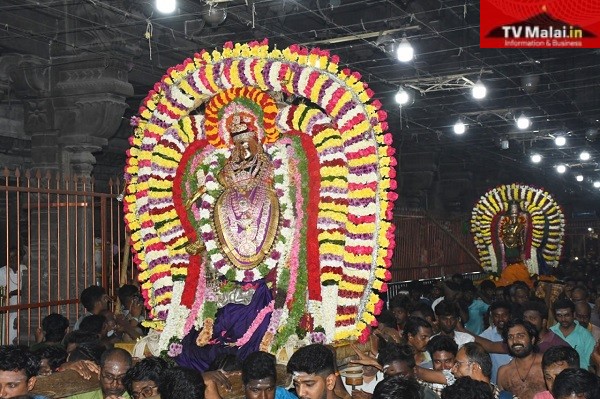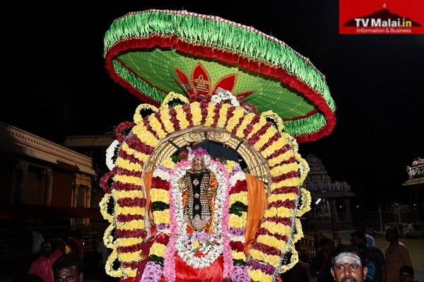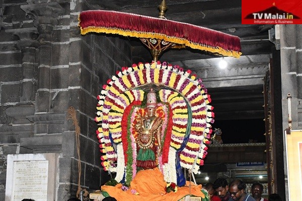 மலை மீது ஏற்றப்பட்ட தீபத்திலிருந்து சேகரிக்கப்பட்ட தீப மை சிவகாமி சமேத நடராஜ பெருமானுக்கு தீப மை நெற்றியில் வைக்கப்பட்டது. இதனை தொடர்ந்து சிவகாமி சமேத நடராஜ பெருமான் 1000 கால் மண்டபத்திலிருந்து ஊர்வலமாக புறப்பட்டு திருமஞ்சன கோபுர வாயில் வழியாக கோயிலை சுற்றியுள்ள மாட வீதிகளில் வலம் வந்து பக்தர்களுக்கு காட்சியளித்தார்.