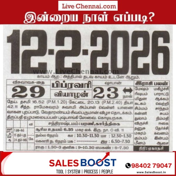 Auspicious (Nalla Neram) time today (Feb 12th)