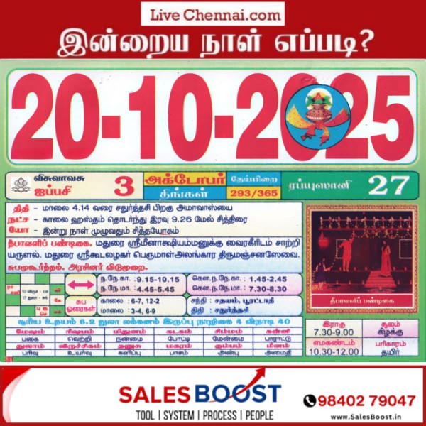 | October 20, 2025 – Monday | Aippasi 03 | Visuvavasu Year | |||