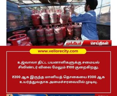 உஜ்வாலா திட்ட பயனாளிகளுக்கு சமையல் சிலிண்டர் விலை மேலும் ரூ.100 குறைத்து மத்திய அரசு உத்தரவிட்டுள்ளது. ஏற்கனவே உஜ்வாலா திட்ட…