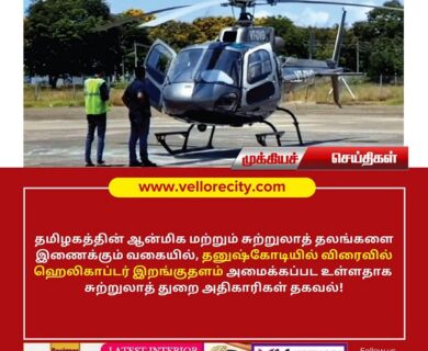 தமிழகத்தின் ஆன்மிக மற்றும் சுற்றுலாத் தலங்களை இணைக்கும் வகையில், தனுஷ்கோடியில் விரைவில் ஹெலிகாப்டர் இறங்குதளம் அமைக்கப்பட உள்ளதாக சுற்றுலாத் துறை…