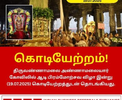 திருவண்ணாமலை அண்ணாமலையார் கோவிலில் ஆடி பிரம்மோற்சவ விழா இன்று (19.07.2025) கொடியேற்றத்துடன் தொடங்கியது.