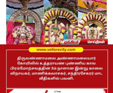 அருள்மிகு அண்ணாமலையார் திருக்கோயிலில், ஆனி மாதம் 23 (07.07.2025) திங்கட்கிழமை காலை 6.30 – 7.25 மணிக்குள் பிரம்மோற்சவ தொடக்கமாக கொடியேற்றம் நடைபெறுகிறது. இதனைத் தொடர்ந்து…