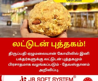 திருப்பதி ஏழுமலையான் கோயிலில் இனி பக்தர்களுக்கு லட்டுடன் புத்தகமும் பிரசாதமாக வழங்கப்படும் என தேவஸ்தானம் அறிவித்துள்ளது.