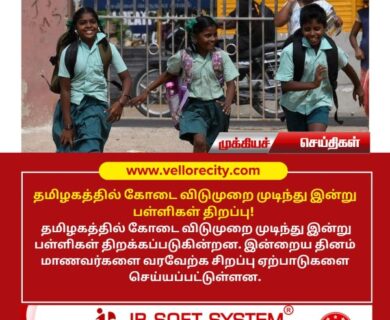 தமிழகத்தில் கோடை விடுமுறை முடிந்து இன்று பள்ளிகள் திறக்கப்படுகின்றன. இன்றைய தினம் மாணவர்களை வரவேற்க சிறப்பு ஏற்பாடுகளை செய்யப்பட்டுள்ளன.