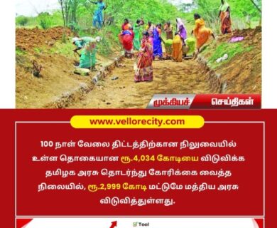 100 நாள் வேலை திட்டத்திற்கான நிலுவையில் உள்ள தொகையான ரூ.4,034 கோடியை விடுவிக்க தமிழக அரசு தொடர்ந்து கோரிக்கை வைத்த நிலையில், ரூ.2,999 கோடி மட்டுமே மத்திய…