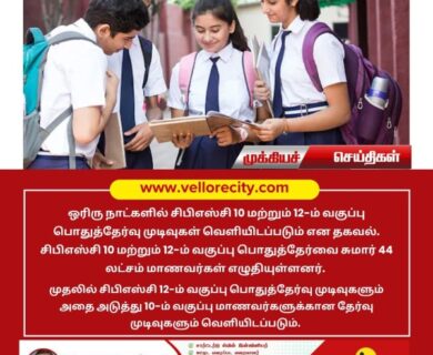 ஓரிரு நாட்களில் சிபிஎஸ்சி 10 மற்றும் 12-ம் வகுப்பு பொதுத்தேர்வு முடிவுகள் வெளியிடப்படும் என தகவல். சிபிஎஸ்சி 10 மற்றும் 12-ம் வகுப்பு…