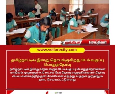 தமிழ்நாட்டில் இன்று தொடங்கும் 10-ம் வகுப்பு பொதுத்தேர்வினை மாநிலம் முழுவதும் 9.10 லட்சம் பேர் தேர்வு எழுதுகின்றனர். தேர்வு மைய வளாகத்திற்குள் செல்போன் எடுத்து வருதல்…
