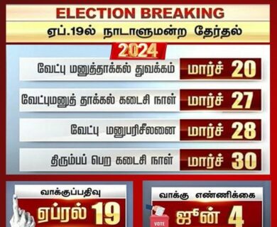 2024 நாடாளுமன்ற மக்களவை தேர்தல் தேதி அறிவிப்பு வேட்பு மனுத்தாக்கல் துவக்கம் : மார்ச்-20 வேட்பு மனுத் தாக்கல் கடைசி…