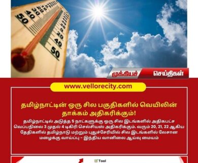 தமிழ்நாட்டில் அடுத்த 5 நாட்களுக்கு ஒரு சில இடங்களில் அதிகபட்ச வெப்பநிலை 3 முதல் 4 டிகிரி செல்சியஸ் அதிகரிக்கும்.…
