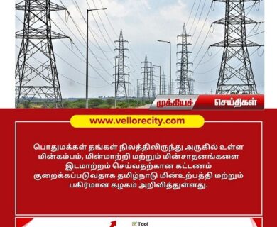 பொதுமக்கள் தங்கள் நிலத்திலிருந்து அருகில் உள்ள மின்கம்பம், மின்மாற்றி மற்றும் மின்சாதனங்களை இடமாற்றம் செய்வதற்கான கட்டணம் குறைக்கப்படுவதாக தமிழ்நாடு மின்உற்பத்தி மற்றும் பகிர்மான…