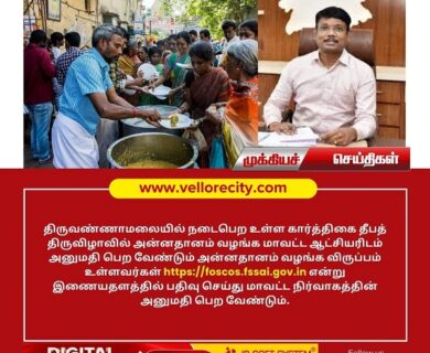 திருவண்ணாமலை அண்ணாமலையார் திருக்கோவிலின் திருக்கார்த்திகை தீபத் திருவிழாவில் அன்னதானம் வழங்க திருவண்ணாமலை மாவட்ட ஆட்சியிரிடம் அனுமதி பெற வேண்டும். அன்னதானம்…