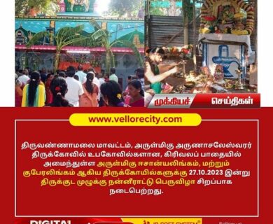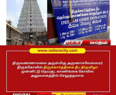 திருவண்ணாமலை அருள்மிகு அருணாசலேஸ்வரர் திருக்கோவில் திருக்கார்த்திகை தீப திருவிழா முன்னிட்டு நெய்குட காணிக்கை கோவில் அலுவலகத்தில் செலுத்தலாம் என கோவில்…