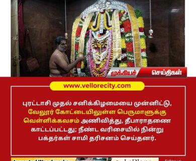 புரட்டாசி முதல் சனிக்கிழமையை முன்னிட்டு, வேலூர் கோட்டையிலுள்ள பெருமாளுக்கு வெள்ளிக்கவசம் அணிவித்து, தீபாராதணை காட்டப்பட்டது; நீண்ட வரிசையில் நின்று பக்தர்கள்…