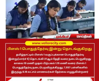 தமிழ்நாட்டில் பிளஸ் 1 வகுப்புக்கான பொதுத்தேர்வு இன்று(மார்ச் 5) தொடங்கி 27ஆம் தேதி வரை நடைபெறுகிறது. காலை 10 மணி முதல் பிற்பகல் 1.15 மணி வரை பிளஸ் 1 பொதுத்தேர்வு நடைபெறவிருக்கிறது. 7,557 பள்ளிகளில் இருந்து 8.18…